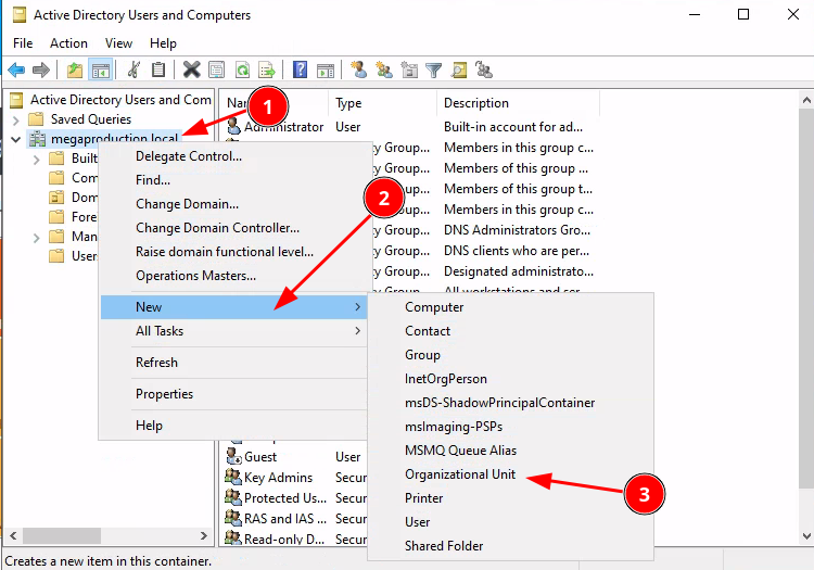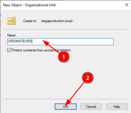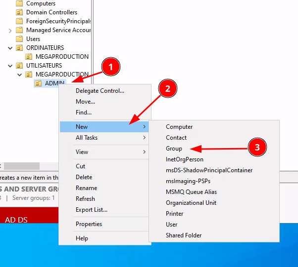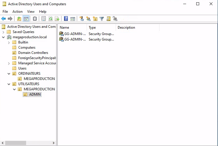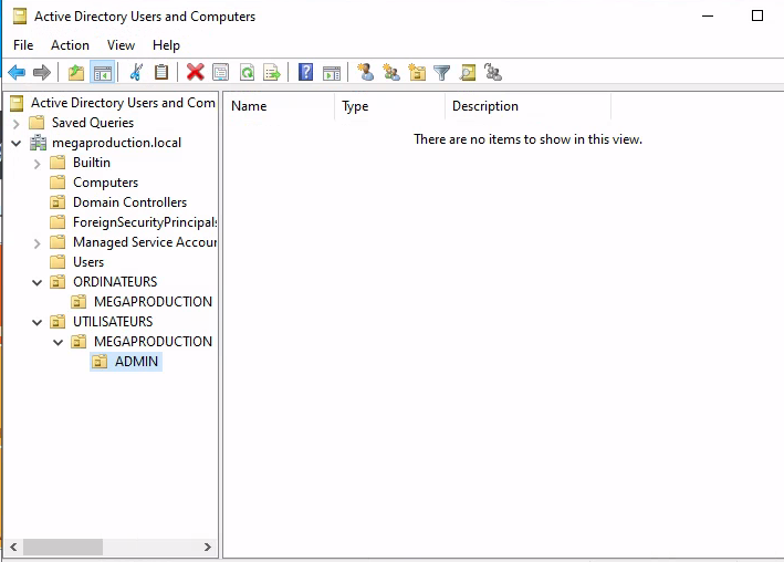 dans l’OU Ordinateurs\MEGAPRODUCTION- Ouvrez un powershell et taper