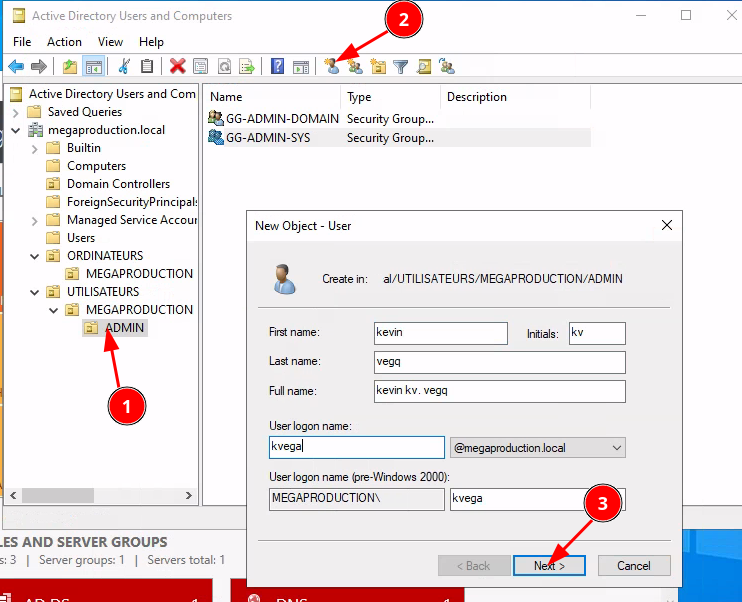 groupes de distribution (utilisé pour la messagerie). - Créer un utilisateur et le mettre dans un groupe