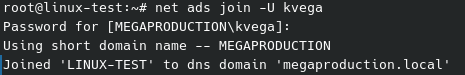 net ads join -U AdministratorRetour de la commande si tout se passe bien: