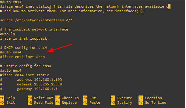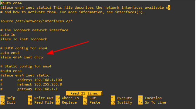 root@debian:~# nano /etc/network/interfaces - Décommenter les lignes suivantes (Comprendre supprimer les # en début de ligne):