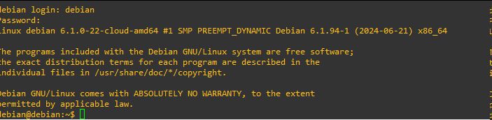 L'utilisateur est debian et le mot de passe debian aussi