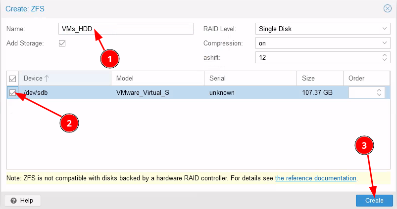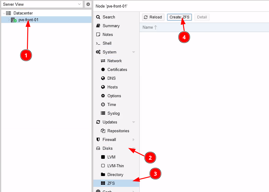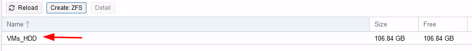 Paramétrez le nouveau disque en ZFS afin qu'il puisse servir de stockage pour les VMS